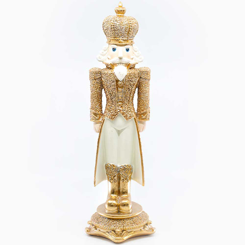 Our Soldier wears an ornate Gold uniform, standing proud with beautiful intricate details. Nutcrackers are perfect for displaying on tables, shelves, countertops and more.