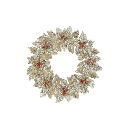 This glittering decoration has a lot of heart because of the beautiful gold and silver tones. Clusters of bright red berries are a hallmark of the holly wreath look. These lightweight decorations will bring a little festive happiness anywhere you want to hang them.