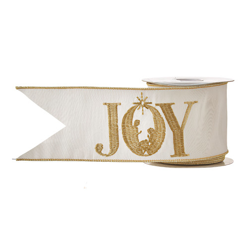 Joy Embroidered Wired Ribbon is perfect to wrap your garland, place on your tree or wrap your gifts