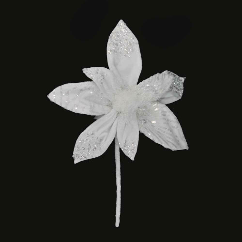 Add these spectacular silver and white embossed poinsettias to a vase,  centre piece or your Christmas tree.