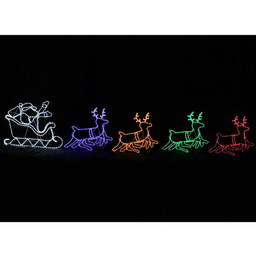 LED Rope Light Sleigh with 4 Multicolour Reindeers - 5m