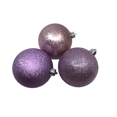 Textured Lilac Baubles (Pack of 6) - 80mm