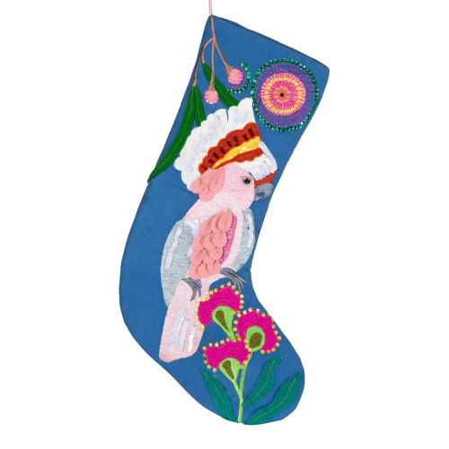 Royal Blue Cockatoo Applique Christmas Stocking - 48cm
