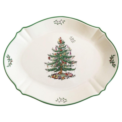 The Christmas Tree design, first introduced by Spode in 1938, is now widely associated with the holiday season. The atmosphere is prepared for a joyous occasion with a big evergreen tree adorned with ornaments and exquisitely wrapped gifts. When everyone has had their fill, put the dishes in the dishwasher to clean. Anyone on your gift list who loves to bake will like this!